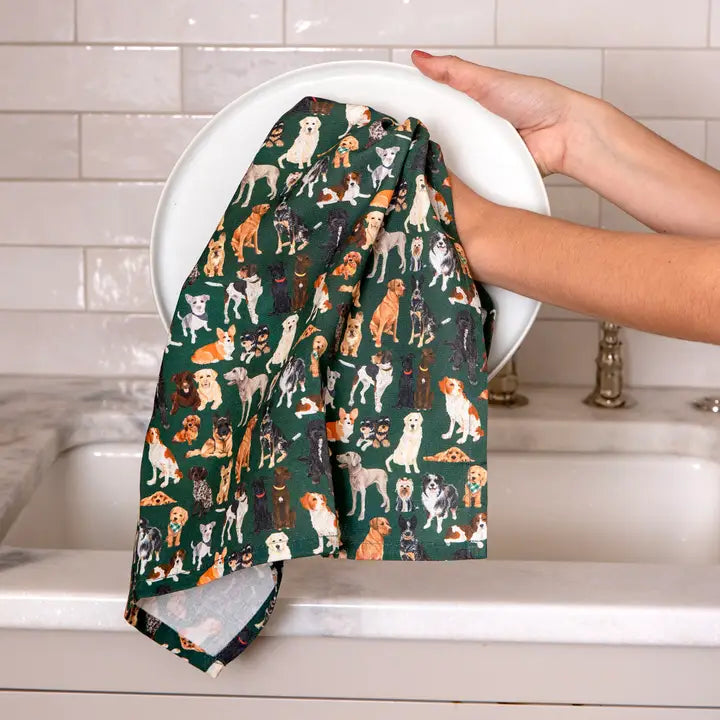 Furry Friends Dogs Green Kitchen Towel
